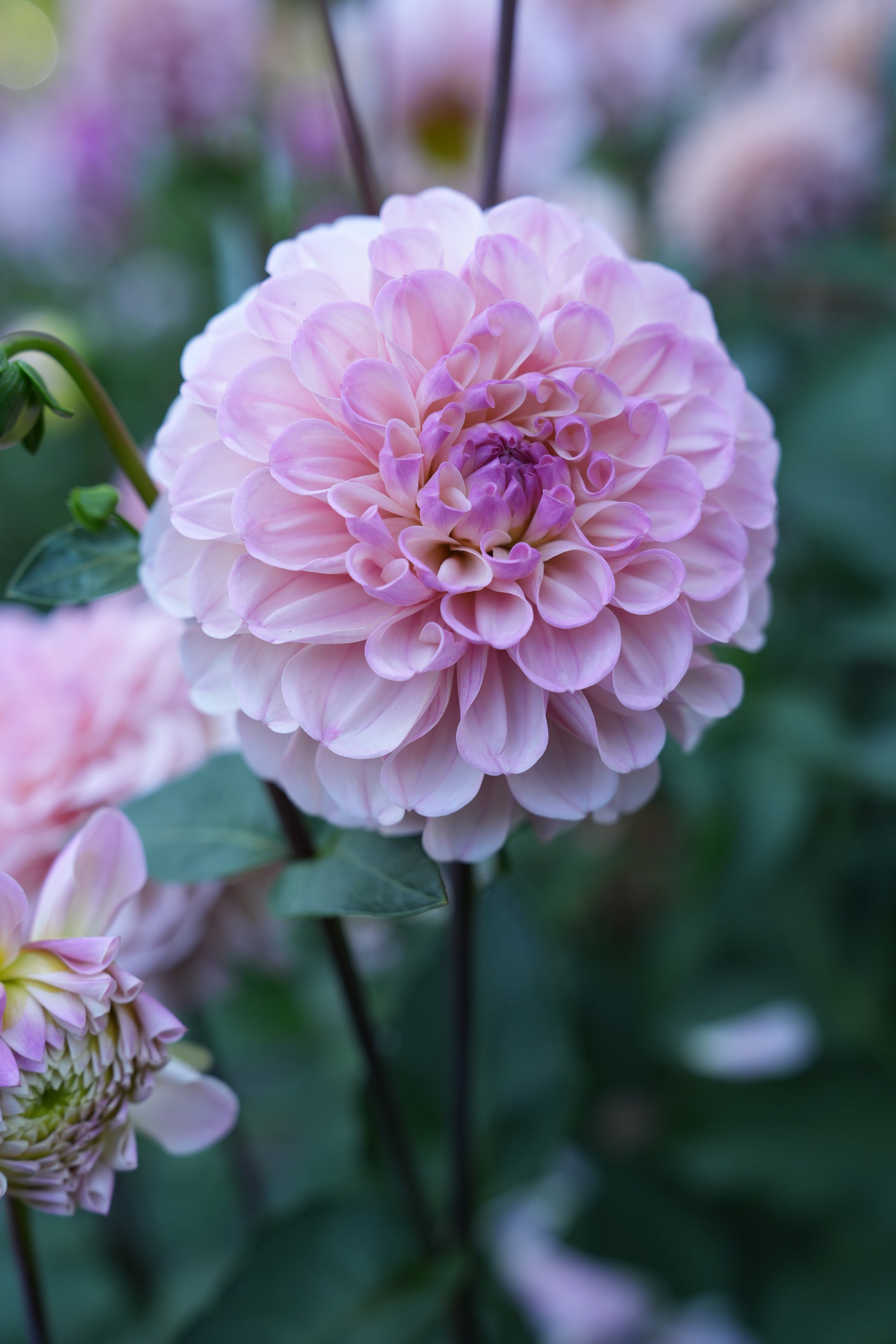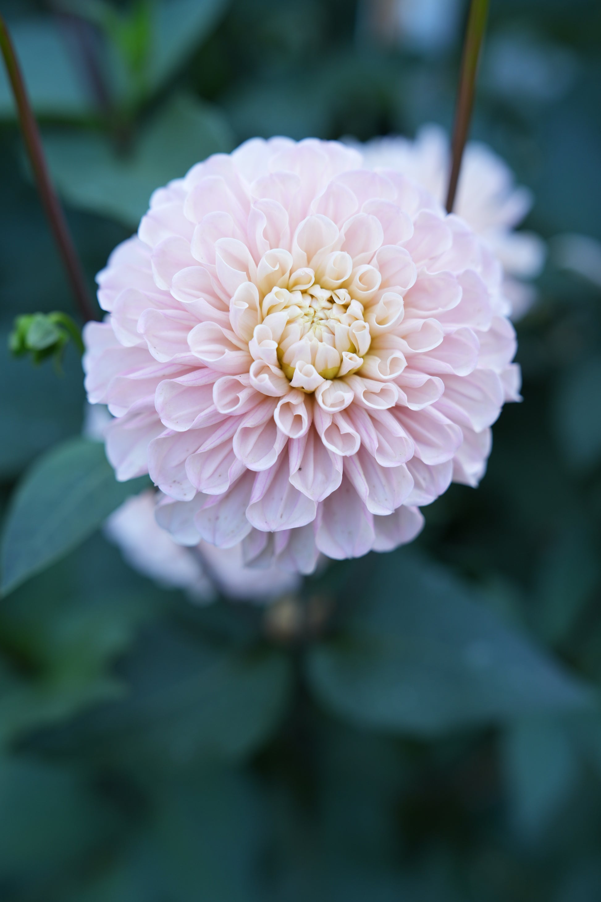 This unique soft blush dahlia on strong dark stems is stunning and makes an excellent choice for floral designers. This dahlia is about 3.5" big on a 4.5' tall plant.