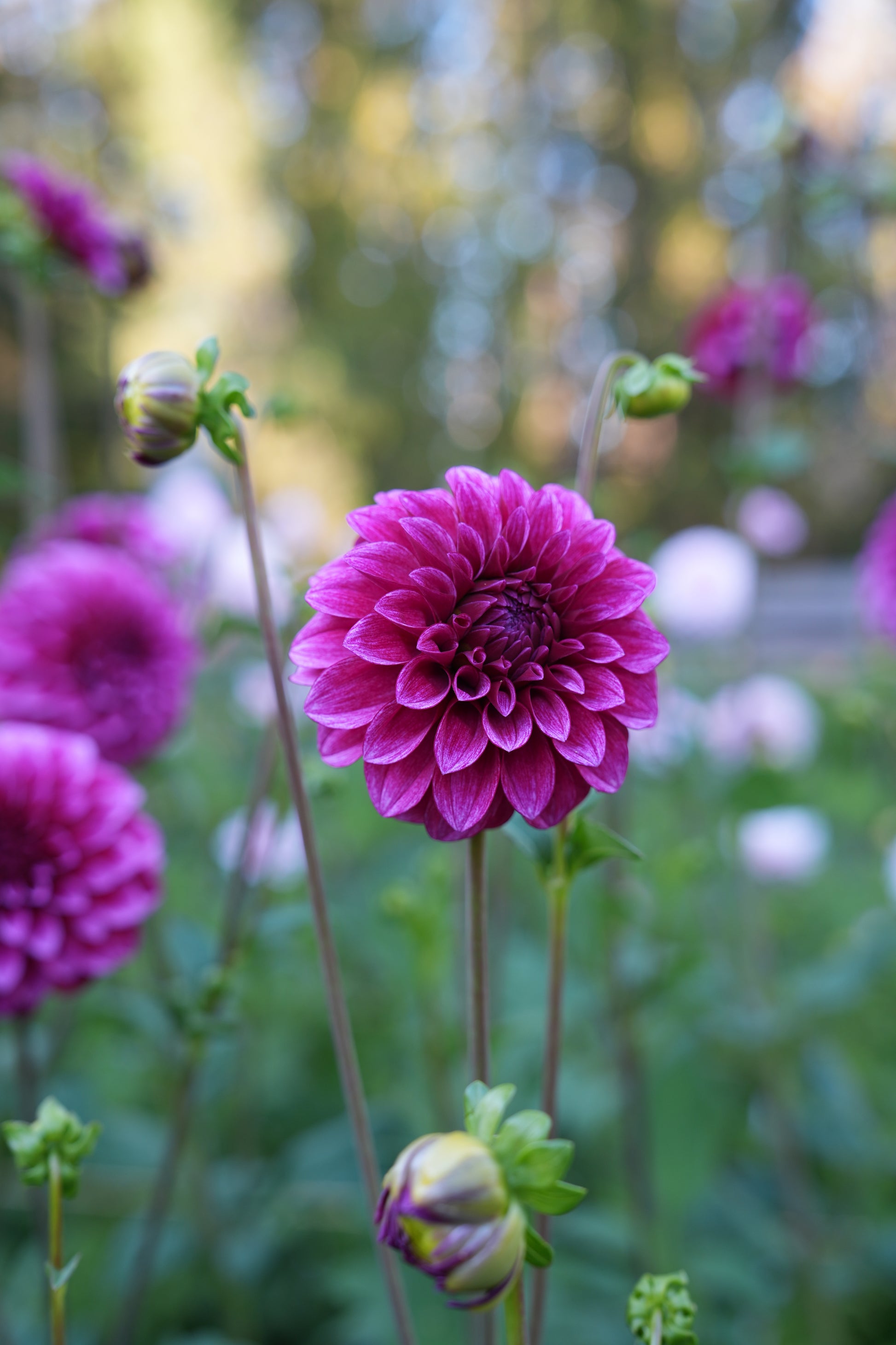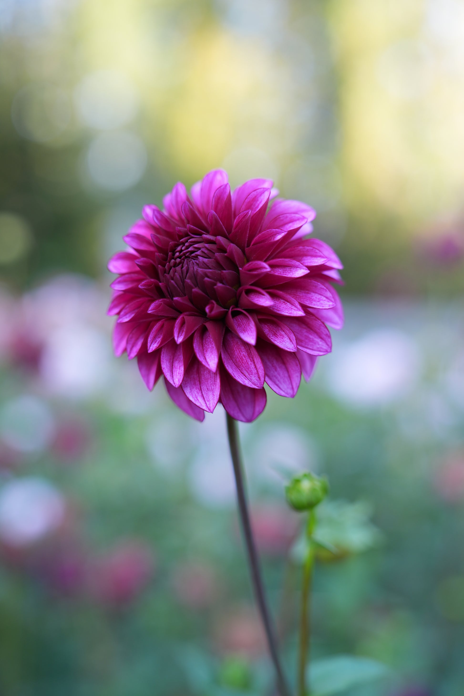RM Berry Bliss is a captivating bloom that enchants with its vibrant magenta petals. Each petal unfurls elegantly, creating a lush, rounded flower head that resembles a ripe berry, offering a sense of abundance and joy. The rich hue is complemented by a subtle sheen, catching the light to reveal deeper tones within its layers. This dahlia is ideal for adding a pop of color to gardens or floral arrangements.