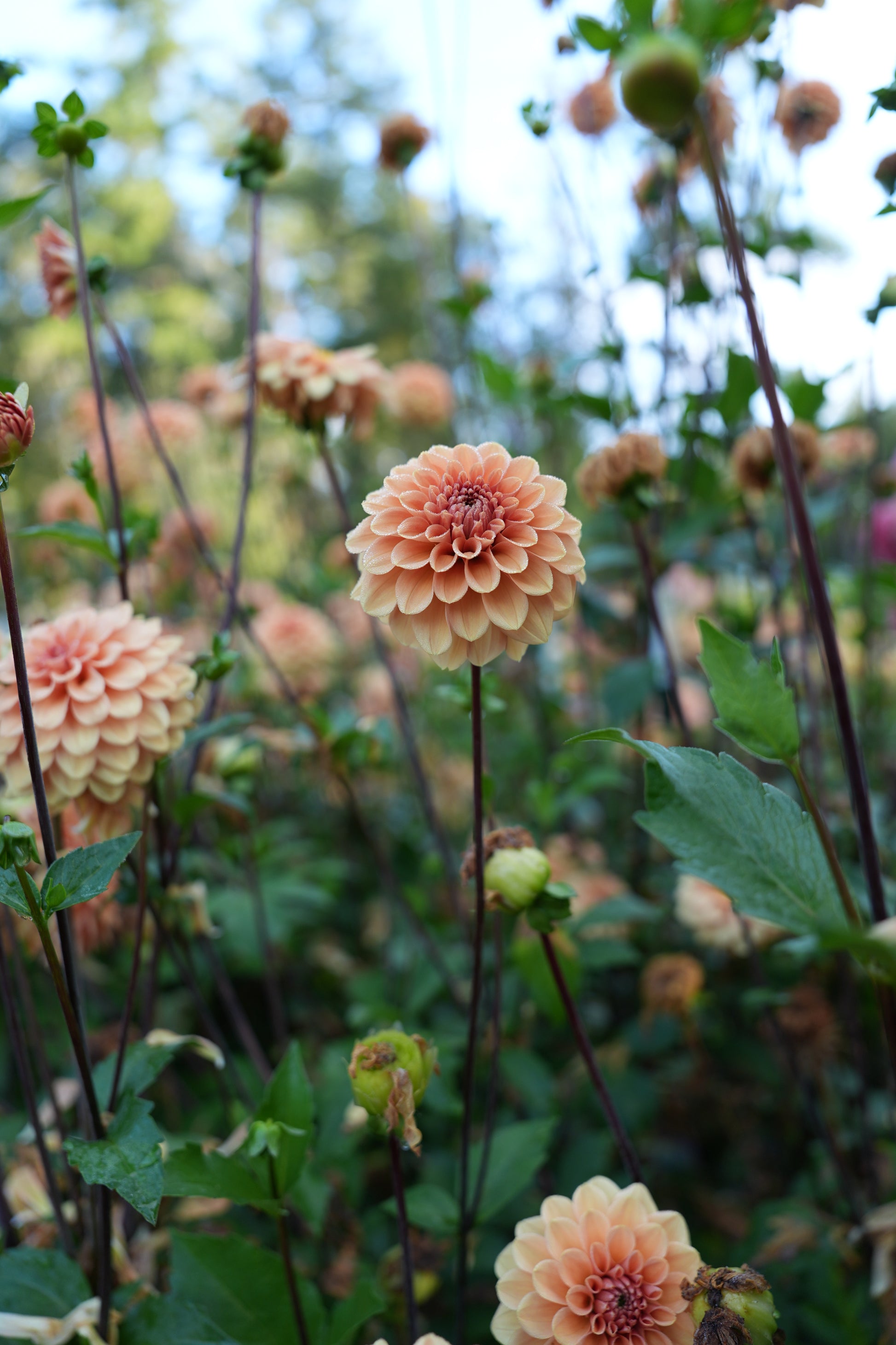 RM Summer Solstice boasts exceptionally long stems. There’s no need to disbud this dahlia, the side buds can measure over 20 inches long. This dahlia is aptly named - the dahlia with the longest stems in the garden named after the longest day of the year. The soft, warm hues of its golden tangerine flowers evoke the warmth of a sun-drenched afternoon, adding a vibrant touch to your garden.
